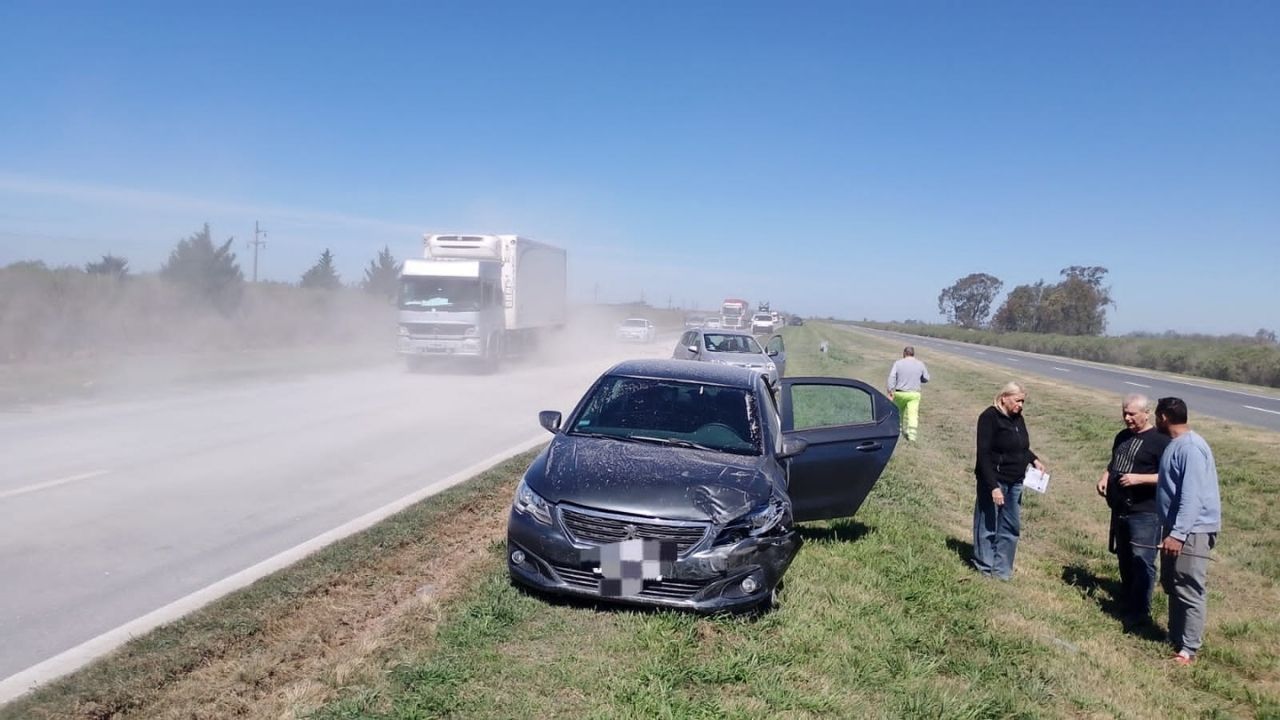Según se informó, un camión habría perdido parte de su carga de bolsas de cemento, las cuales impactaron sobre varios vehículos que circulaban en el mismo sentido.